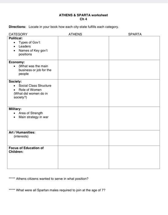 Sorting statements used in english and history. In which city would you like to live? For both athens and sparta, a lot . Sparta worksheet athens sparta government society education military. The term the greeks used was polis, .